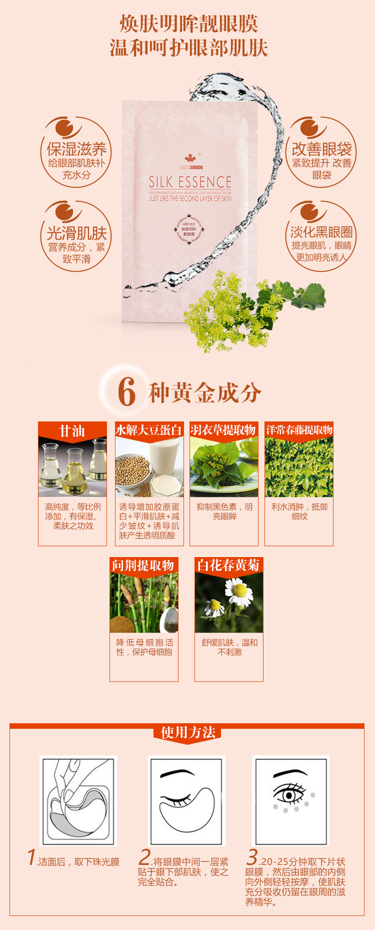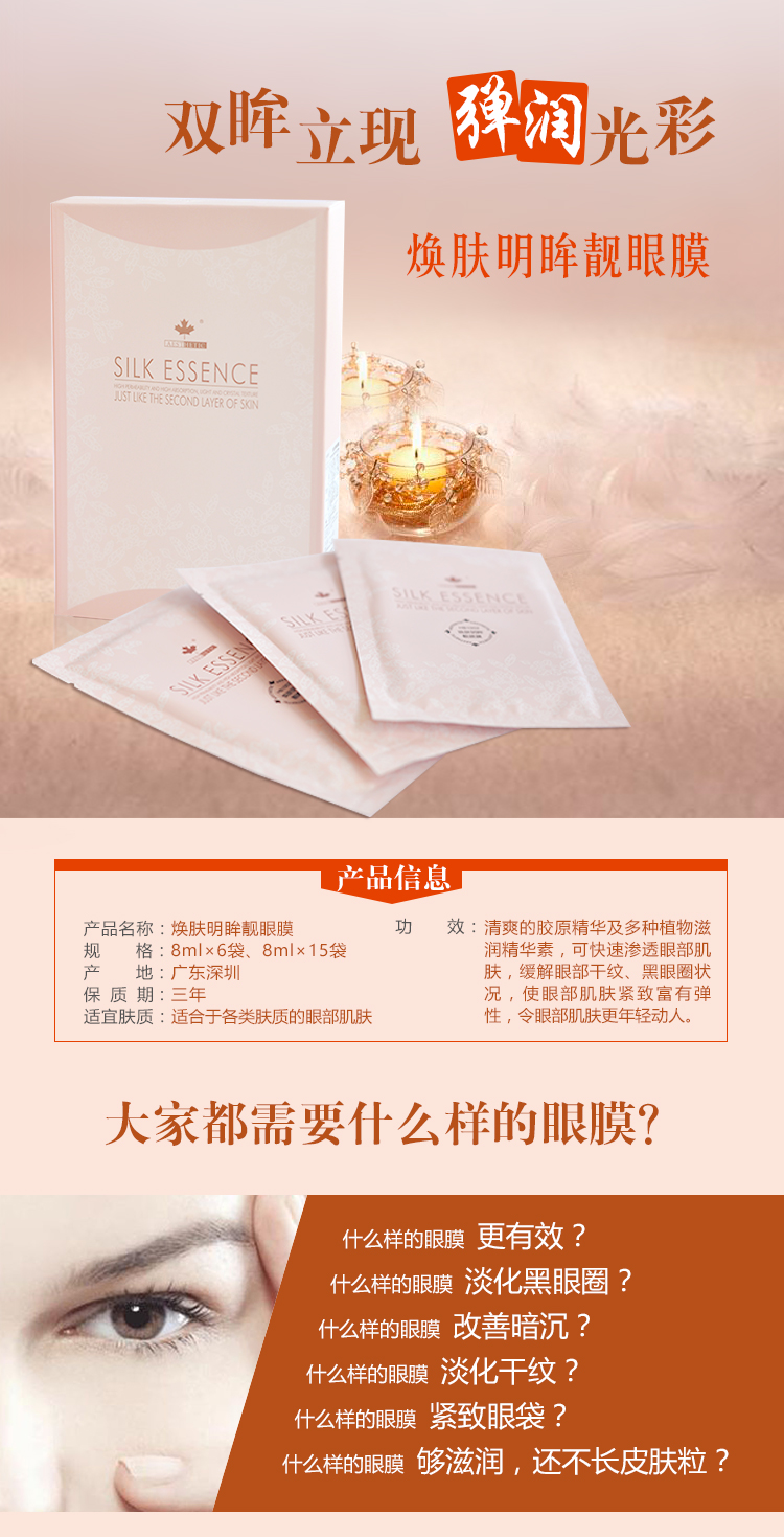 清爽自然的膠原精華及多種植物滋潤精華素,使眼部肌肉恢復緊實、有彈性,在眼部肌膚四周形成保護膜,顯著改善松垮眼袋,重拾明亮緊致的雙眸。